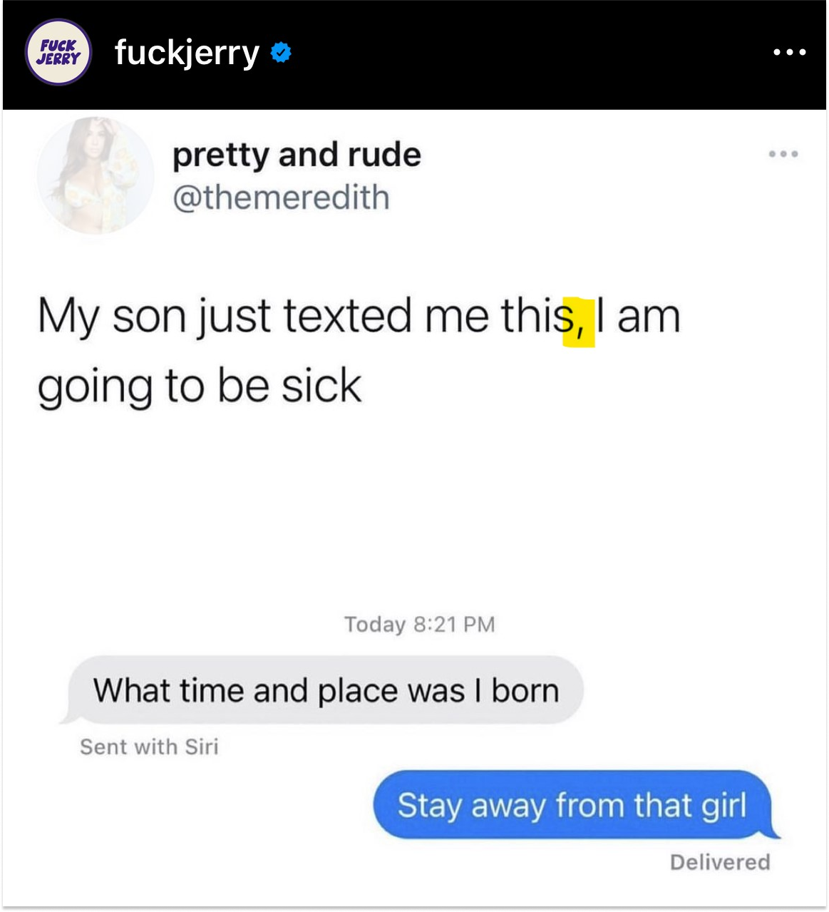 To fix it: Therefore, the best edit to the originally mentioned sentence should be “My son just texted this to me; I am going to be sick.”